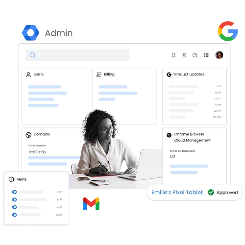 Google Workspace provides robust admin tools that help IT teams easily manage users, assign roles, and monitor email, files, and apps — all from a centralized, web-based dashboard.